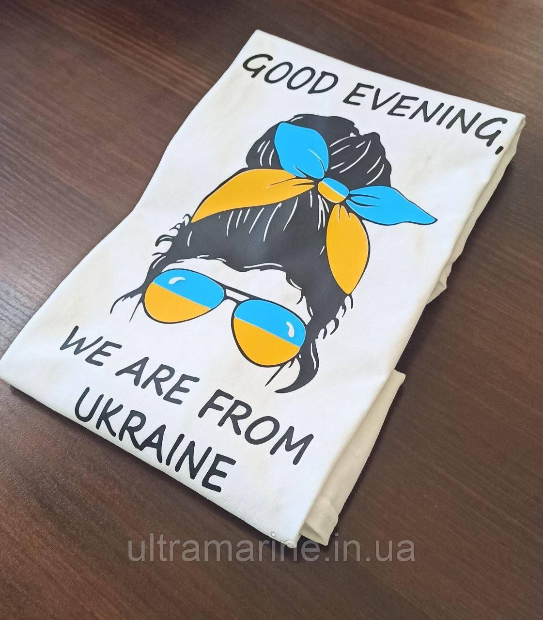 Футболка ЛЮКС з патріотичним принтом "Good evening we are from Ukraine" (Доброго вечора, ми з України)