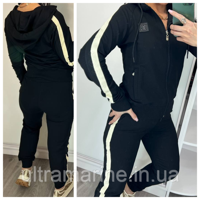Жіночий костюм двійка Louis Vuitton з капюшоном чорний (трикотаж двунить Туреччина)